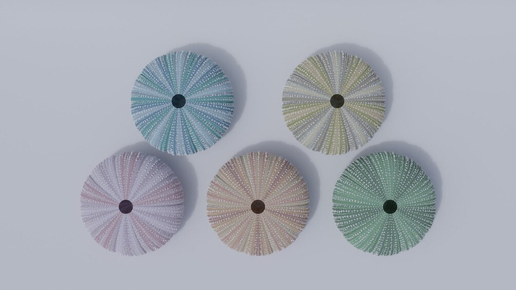 This is the blend file for the sea urchin shell tutorial that I made for youtube. It also contains 4 more color variations.